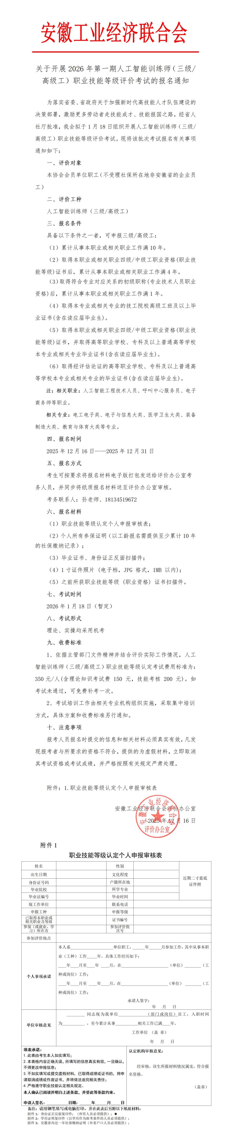 关于开展2026年第一期人工智能训练师(三级)职业技能等级评价考试的报名通知