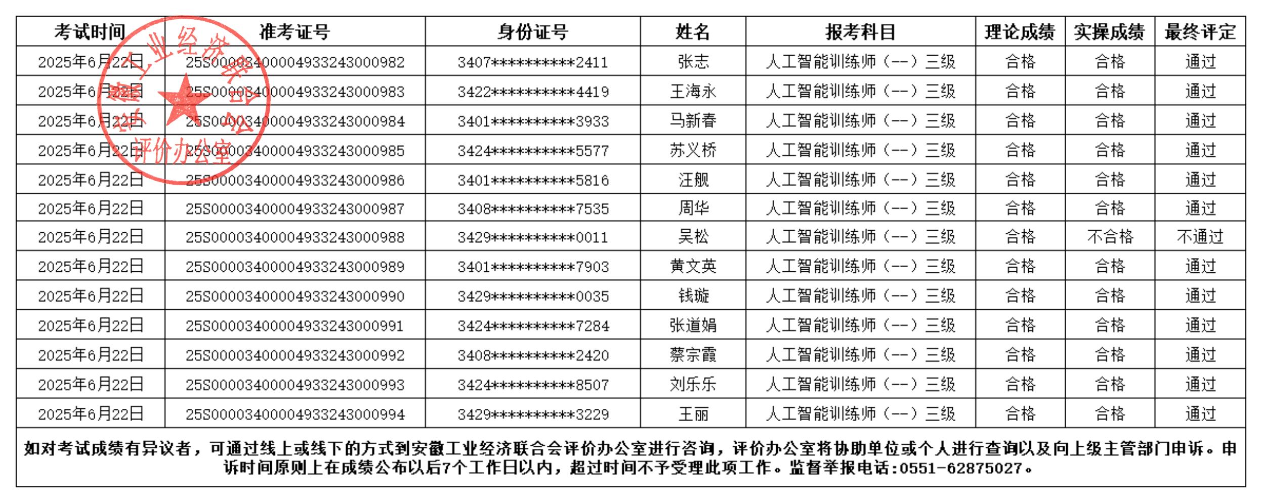 【成绩公示】2025年总第4期职业技能等级认定—人工智能训练师三级成绩发布