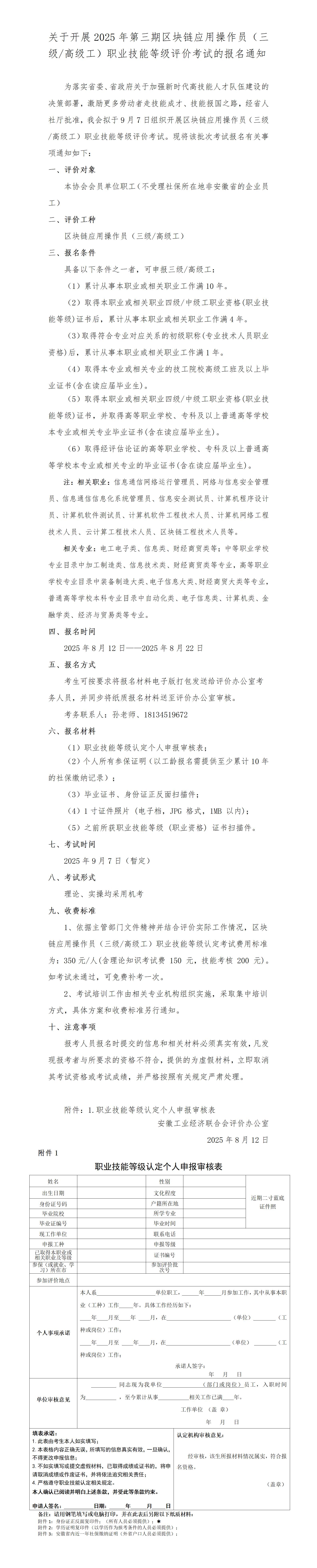 关于开展2025年第三期区块链应用操作员(三级)职业技能等级评价考试的报名通知